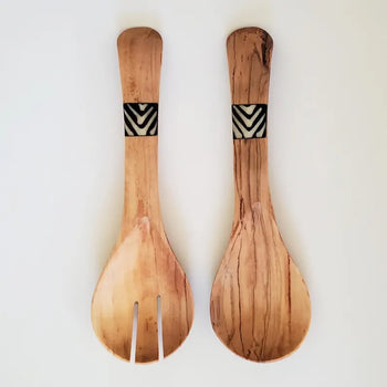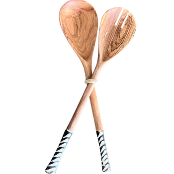 Enjoy your meals with these handmade olive wood salad servers. Crafted by skilled artisans in Kenya, each set is unique. The detailed bone inlay on the...