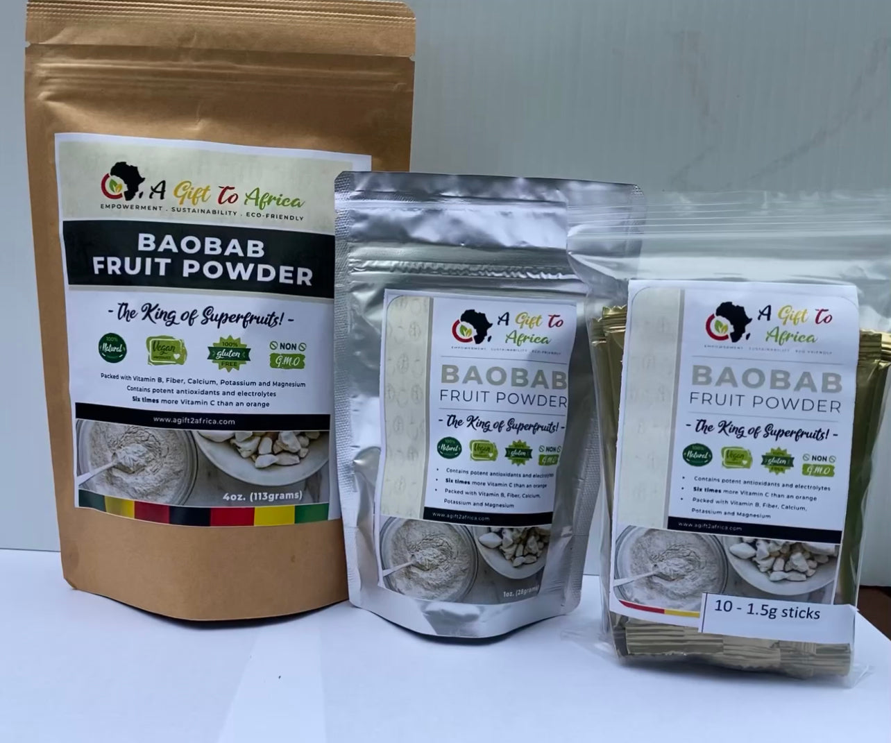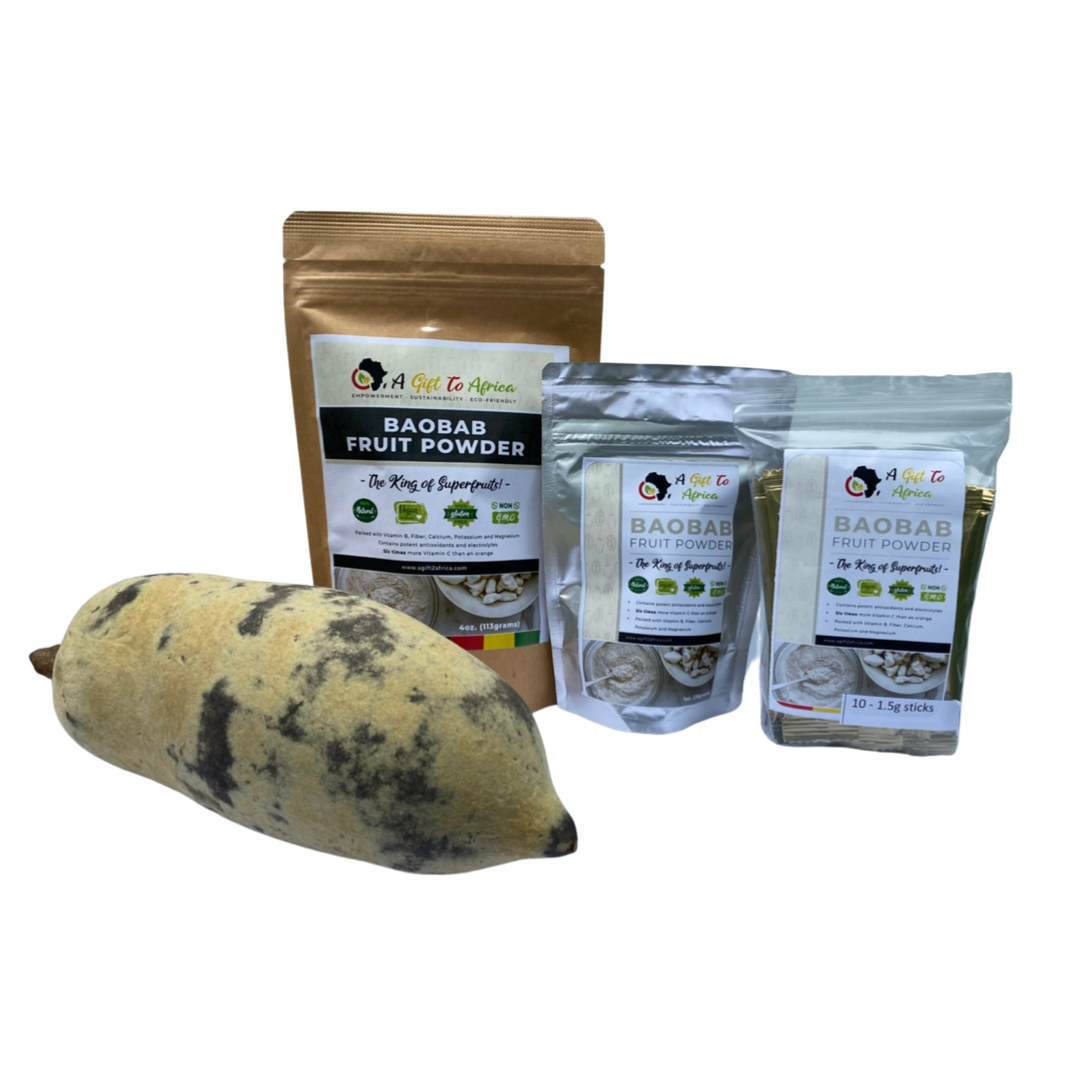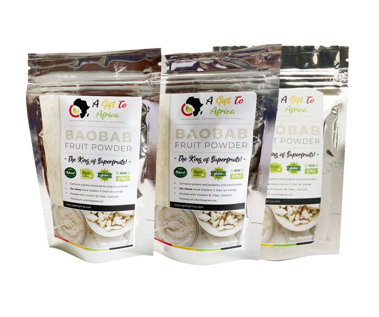 The Baobab Fruit Powder is an all-natural Fruit Powder straight from the fruit – Nothing else added, 100% raw. Packed with Anti-oxidants, Vitamin C, Magnesium, Potassium, Iron, Calcium and Fiber, - no wonder it is named the King of Superfruits!